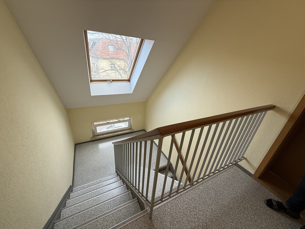 Die angebotene Dachgeschosswohnung befindet sich in einem gepflegten Mehrfamilienhaus im Dresdner Stadtteil Cotta. Die Wohnung wurde Ende der 1990er-Jahre saniert und präsentiert sich in einem guten Zustand.