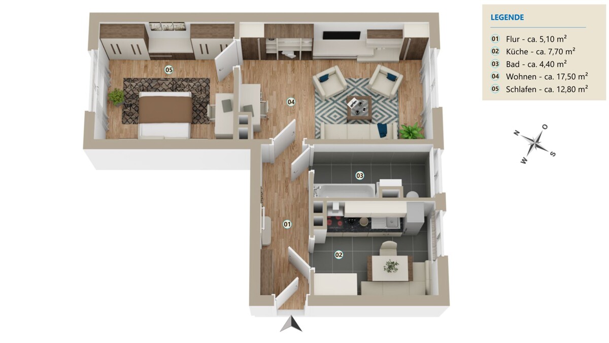 Alle Angaben wurden nach bestem Wissen erstellt, erheben jedoch keinen Anspruch auf Richtigkeit und Vollständigkeit. Die Grundrisse sind nicht maßstabsgerecht und dienen lediglich der Veranschaulichung. Visualisierungen, insbesondere die Einrichtungen dienen als Vorschlag für die spätere Einrichtungsgestaltung. Die vorliegenden Angaben sind als unverbindliche Information zu verstehen und können nicht als Rechtsgrundlage herangezogen werden. Rechtskräftig ist ausschließlich der notariell abgeschlossene Kaufvertrag.